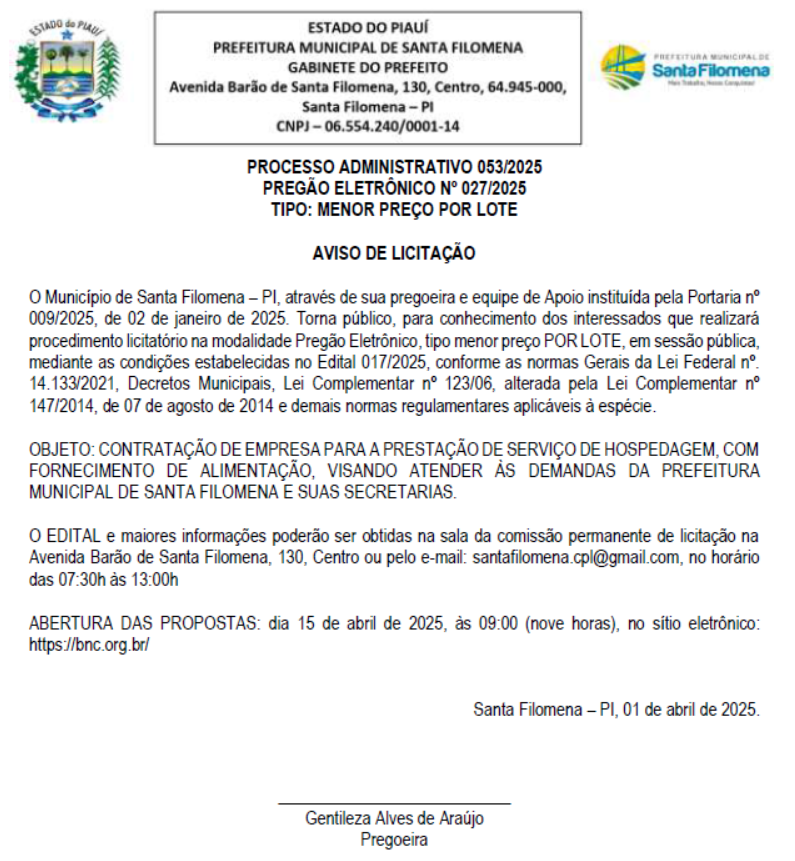 AVISO DE PREGÃO ELETRÔNICO Nº 027/2025